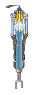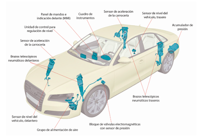 Cada bloque de suspensión lo controla una electroválvula, abriendo o cerrando la comunicación con el circuito. Las electroválvulas de suspensión se excitan eléctricamente por parejas, eje delantero y eje trasero.